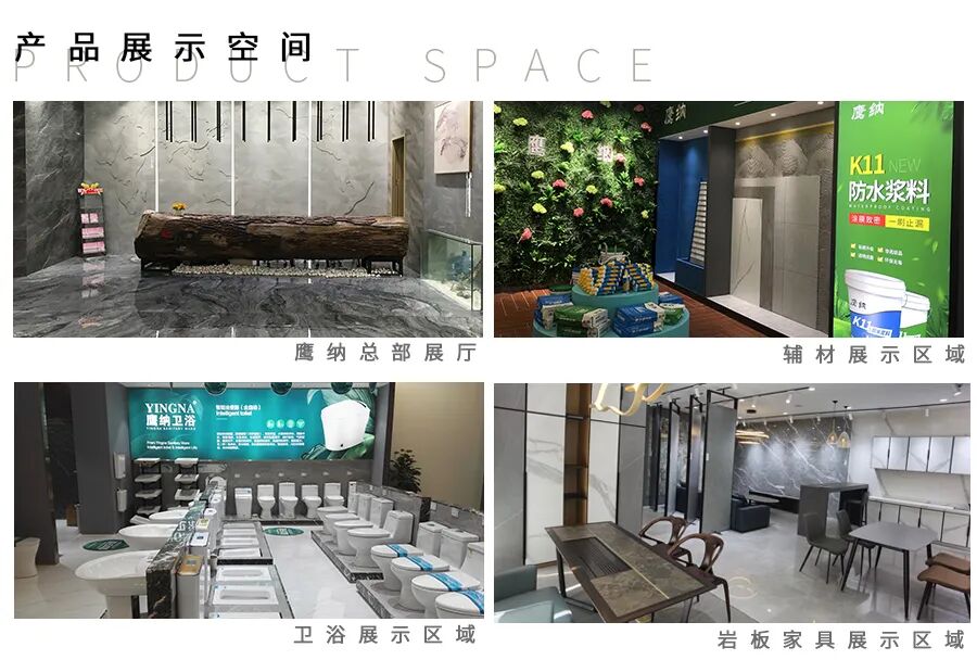 鹰纳陶瓷立足于千年陶都·佛山,展厅坐落于陶瓷集散中心华夏陶瓷城。凭借着多年的建材行业沉淀和积累,鹰纳有条理的进行资源配备,有方向的进行渠道拓展,打造一套完善的产品供应体系,现产品涵盖有“全品类瓷砖”、“岩板家具”、“全卫浴品类”,“瓷砖辅材”一共四大“硬核”产品,助力于经销商客户,拓展市场。